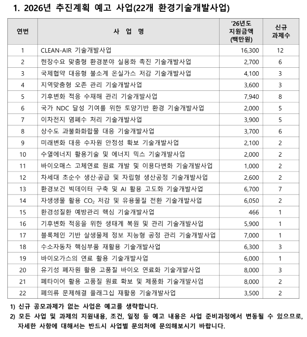 기후에너지환경부와 한국환경산업기술원(KEITI)이 발표한 「2026년도 환경기술개발사업 추진계획 예고」를 통해