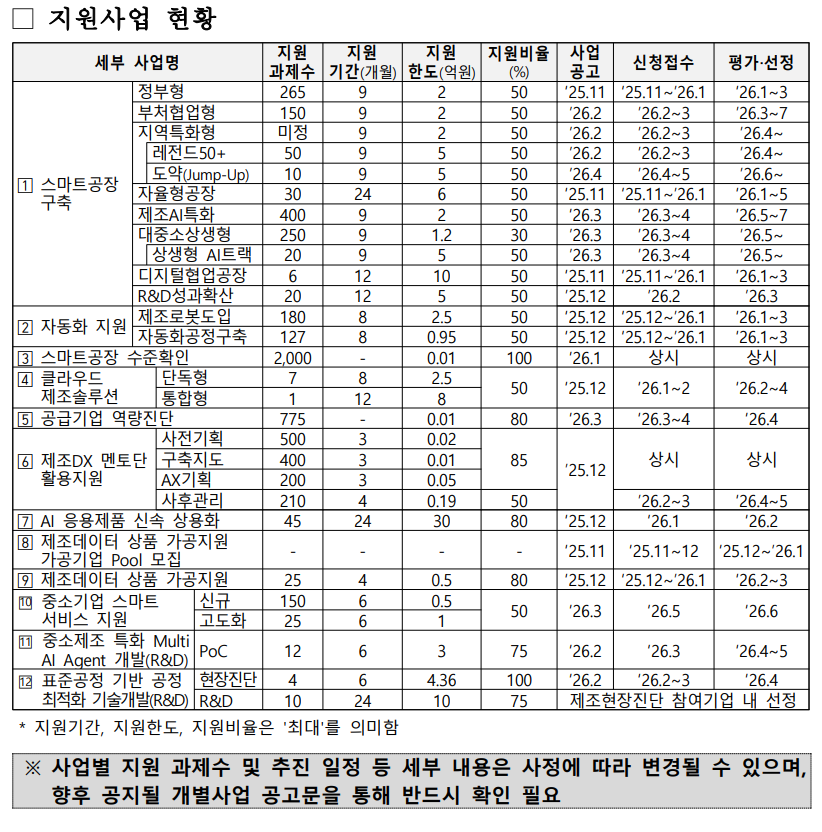 2026년 스마트 제조혁신 지원사업 통합공고 조회 34회 작성일 25-10-31